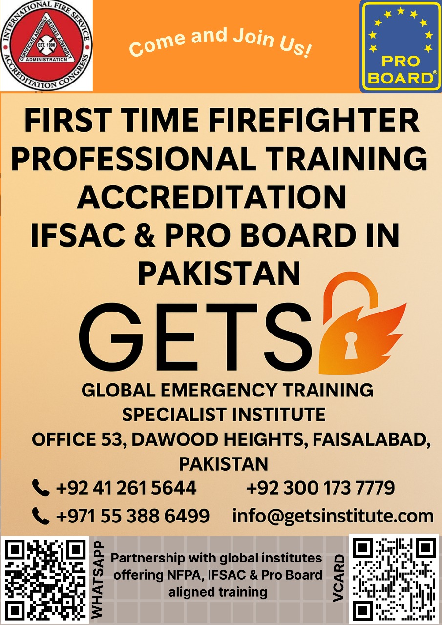 GETS Institute is a professional emergency response training provider delivering Fire, Rescue, Hazmat, Medical, and Safety programs aligned with internationally recognised institutes and standards, including NFPA, IFSAC, Pro Board, JOIFF, NEBOSH, IFE, and SFPE.